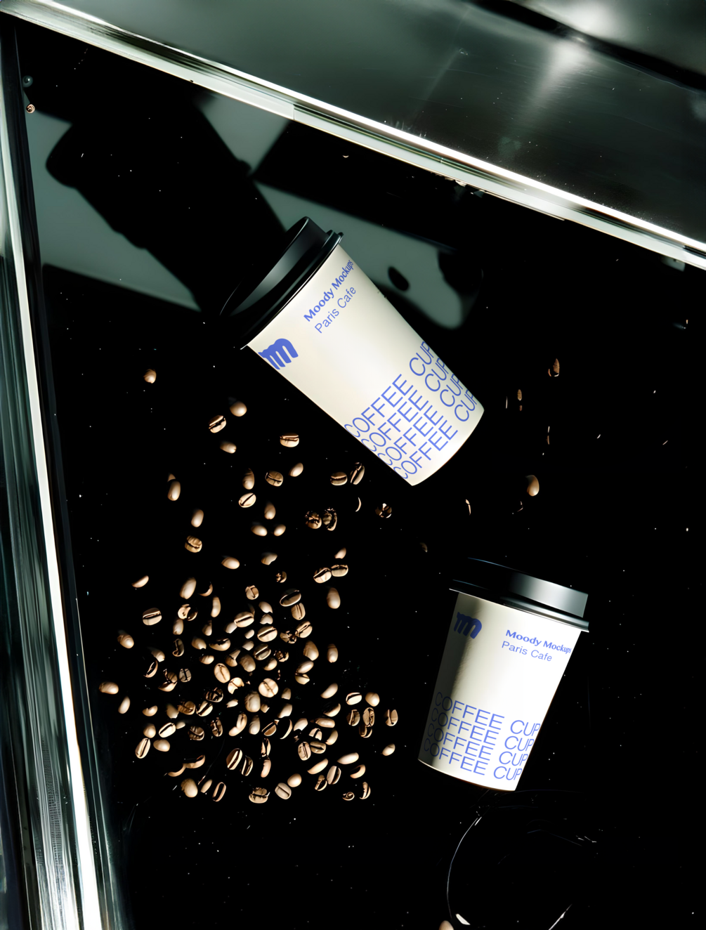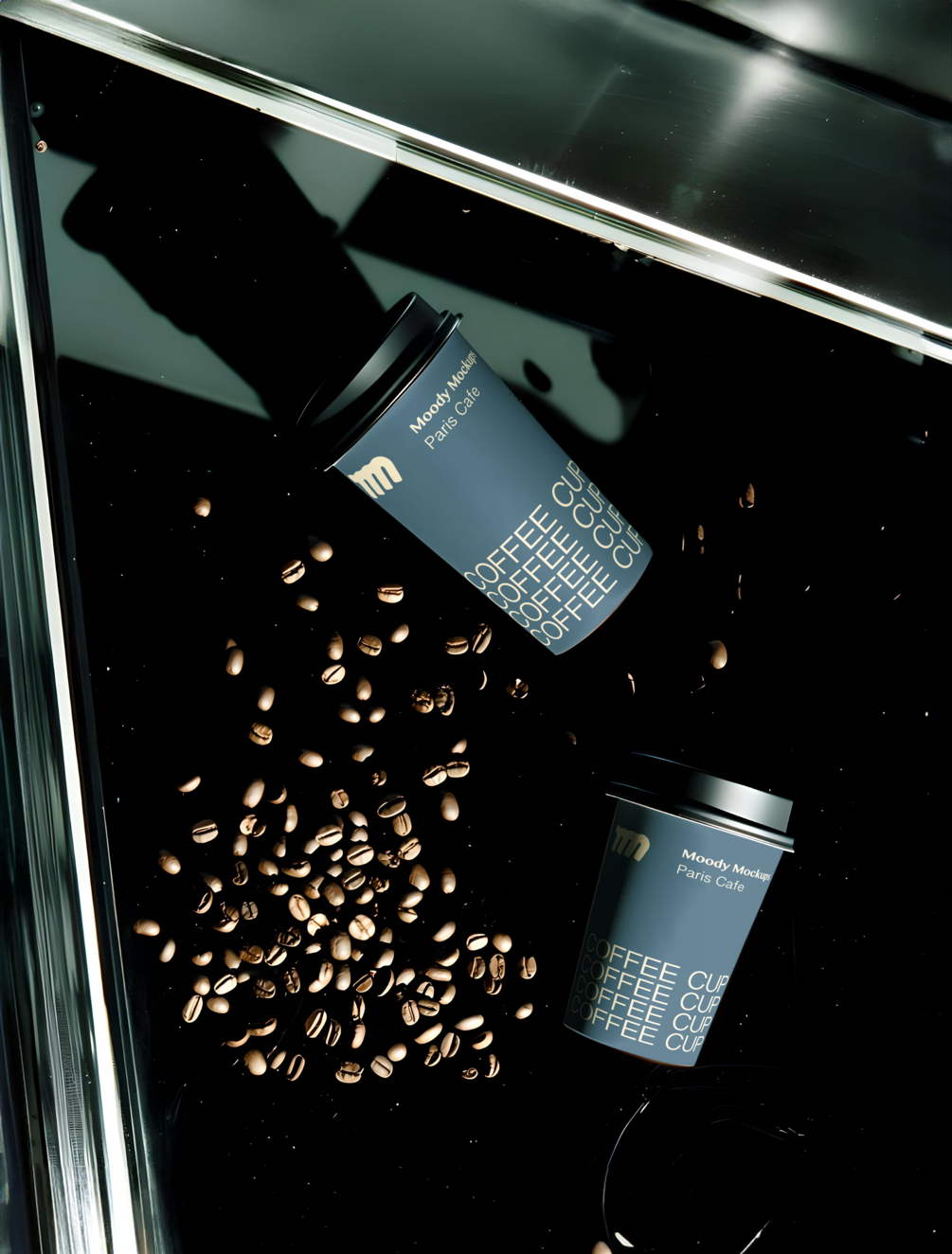 Floating Coffee Cups Mockup for Branding Design | High Resolution PSD File