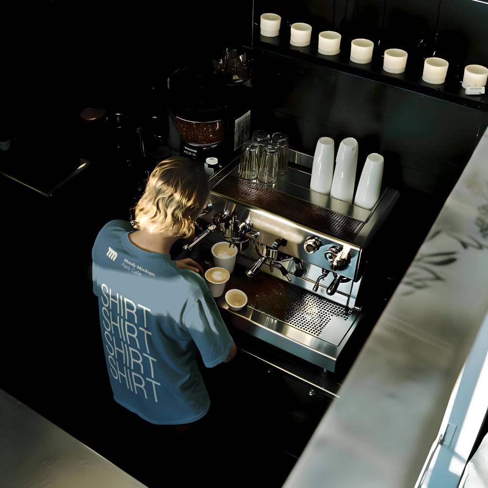 Cafe Barista T-Shirt Mockup for Branding Design | High Resolution PSD File